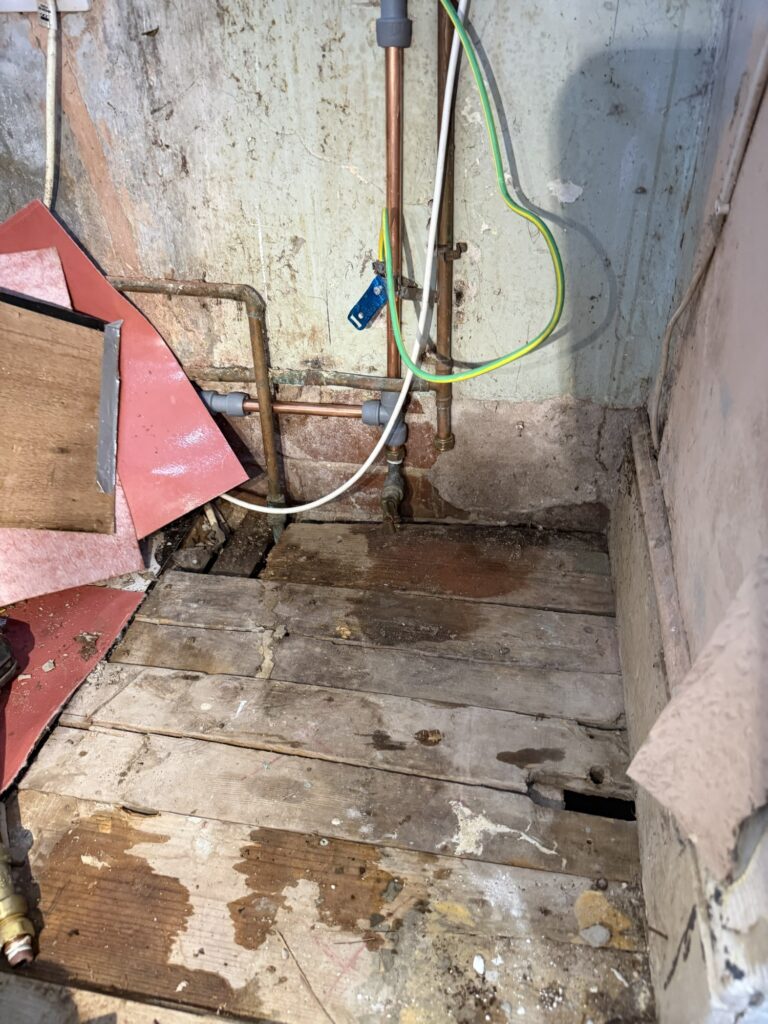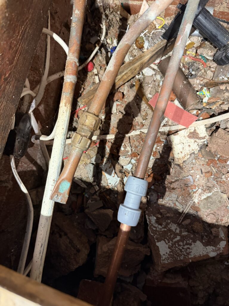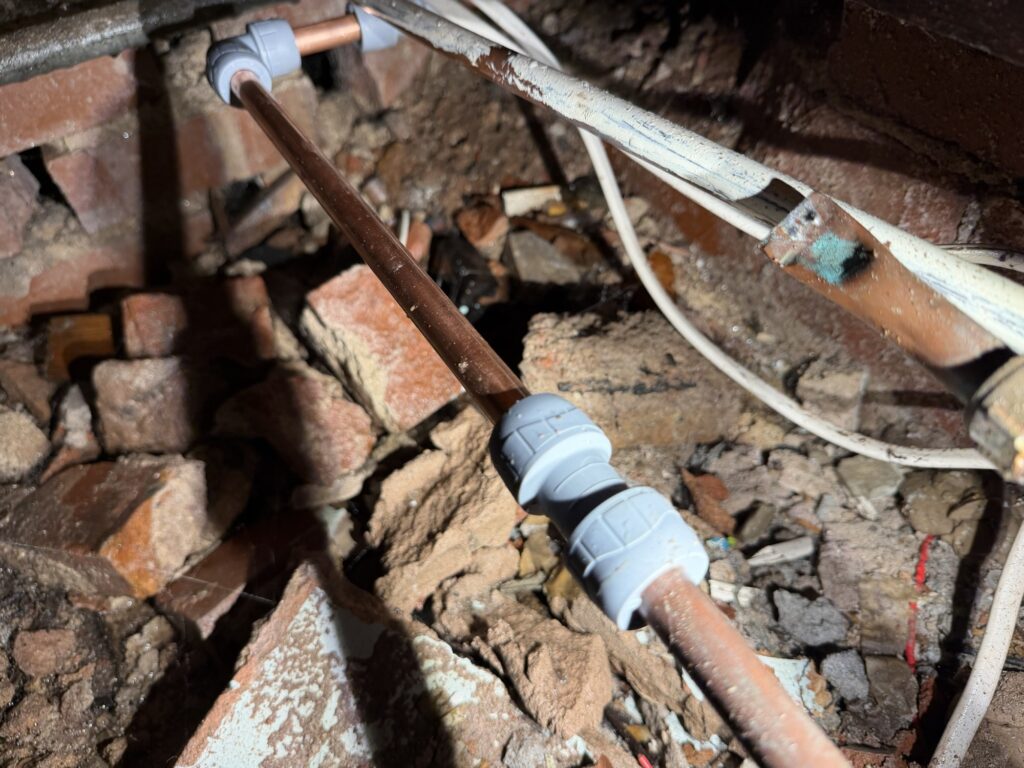 We recently attended an emergency plumbing call-out in Exmouth to repair a live mains water leak between internal and external stop cocks.